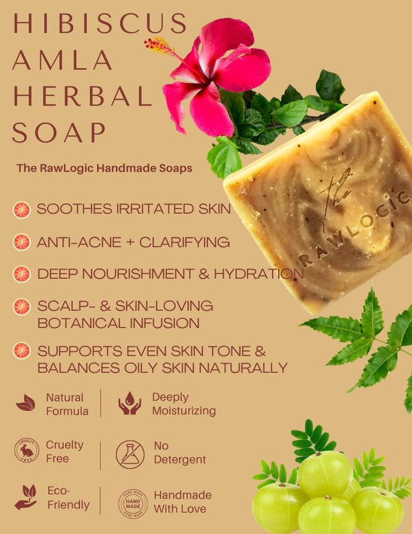 RawLogic's soaps are crafted using natural oils, butters, and essential oils. Each variant may have specific ingredients tailored to its unique properties and natural fragrance.