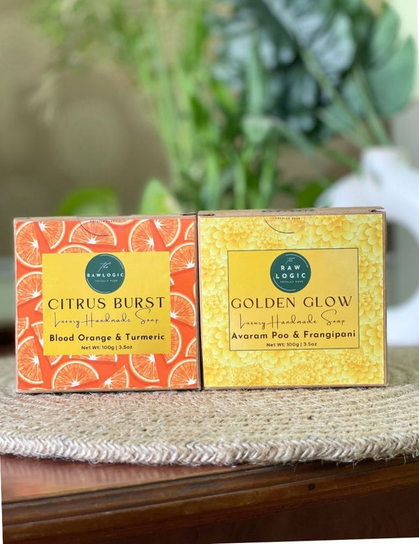 Bring home the goodness of nature with The Rawlogic Handmade Natural Soap Combo, featuring the skin-brightening Avarampoo Soap and the refreshing Lemon Turmeric Soap. Made with nourishing oils, rich butters, and Ayurvedic botanicals, this cold process soap duo gives your skin deep hydration, detoxification, and glow. Having two luxurious variants in one pack means you can enjoy a balance of herbal care and citrus freshness while making your bath routine feel indulgent and wholesome.