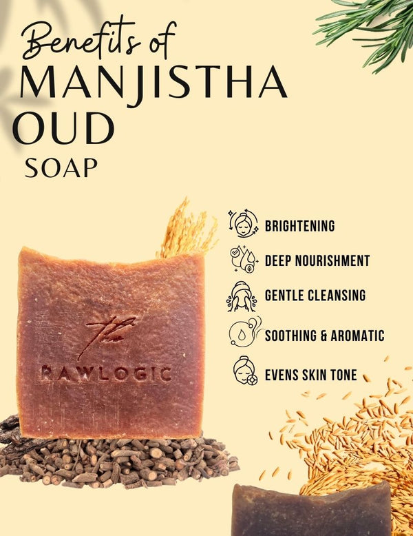 Elevate your skincare ritual with The Rawlogic Handmade Natural Soap Combo Pack, featuring Manjistha Soap, Moringa Soap, and Lemon Turmeric Soap. Crafted using the traditional cold process method, each bar is rich in natural botanicals, Ayurvedic herbs, and nourishing oils & butters that pamper your skin. This luxury soap set offers the benefits of three different formulations in one combo – perfect for daily cleansing, gifting, or indulging in a spa-like skincare experience at home.