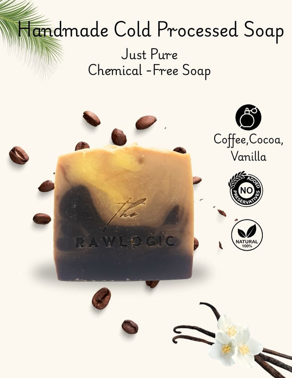 Wake up your skin with The RawLogic Coffee & Cocoa Scrub Bar – a natural exfoliating powerhouse infused with real coffee grounds, rich cocoa powder, and a touch of warm vanilla essential oil. This bar is a perfect blend of scrub + skin-loving oils, handcrafted to stimulate circulation, reduce cellulite, and leave your skin smooth, firm, and glowing.