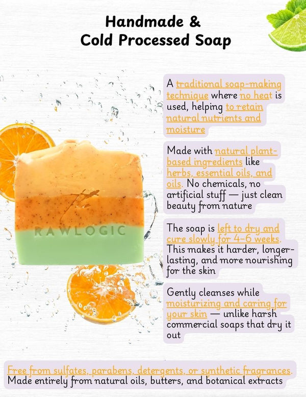 Get ready to glow with the Sunshine Layered Citrus Bar from The RawLogic—a vibrant, triple-layered cold process soap infused with pure essential oils of lemon, orange, and lime. Each layer is thoughtfully crafted to brighten, energize, and deeply cleanse your skin while offering a zesty aromatic experience that lifts your mood.